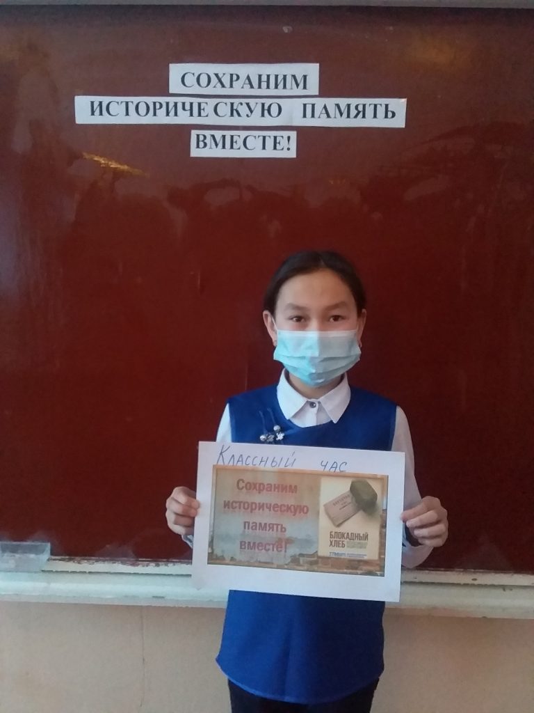 В 6 классе проведен классный час по теме «Блокадный хлеб» с целью пробудить в детях чувство сострадания и гордости за стойкость своего народа в период блокады Ленинграда и на протяжении всей Великой Отечественной войны с помощью рисунков, плакат и поэтической литературы. Классный руководитель Ооржак С.К.