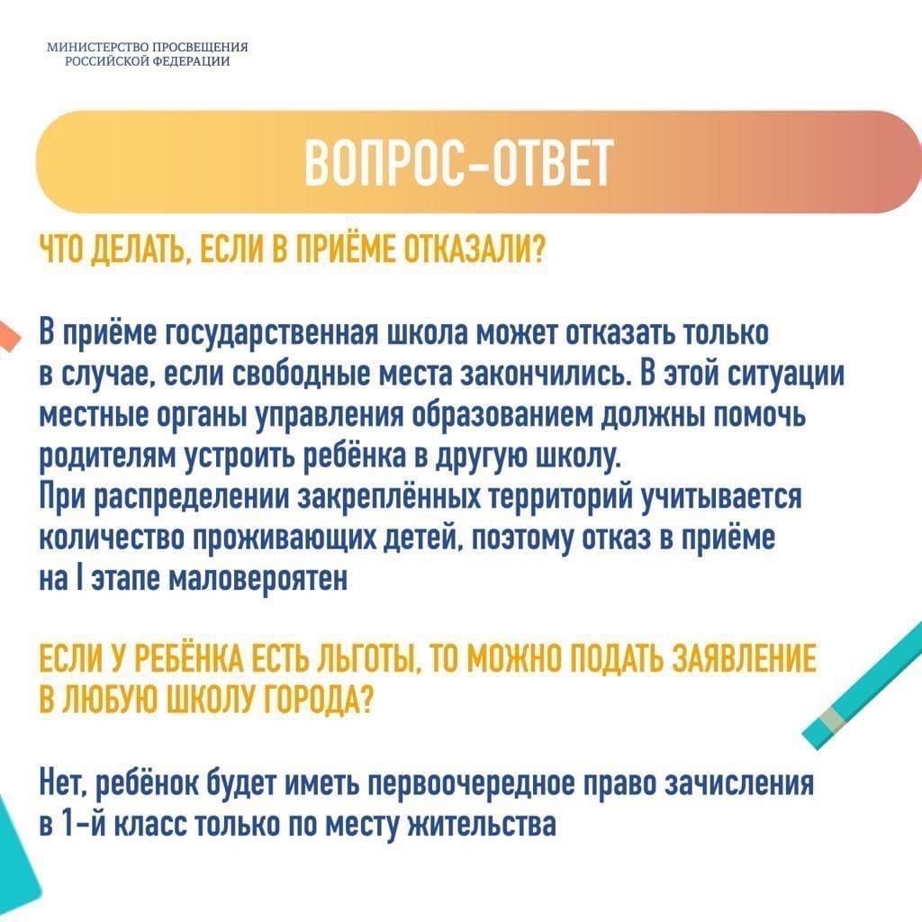 Изменения порядка зачисления ребенка в школу по сравнению с 2023 годом не существенные. В перечень льготников, которым теперь положено внеочередное право на зачисление в 1 класс, включили детей, чей отец погиб на СВО или позднее из-за полученных ранений, травм и заболеваний: