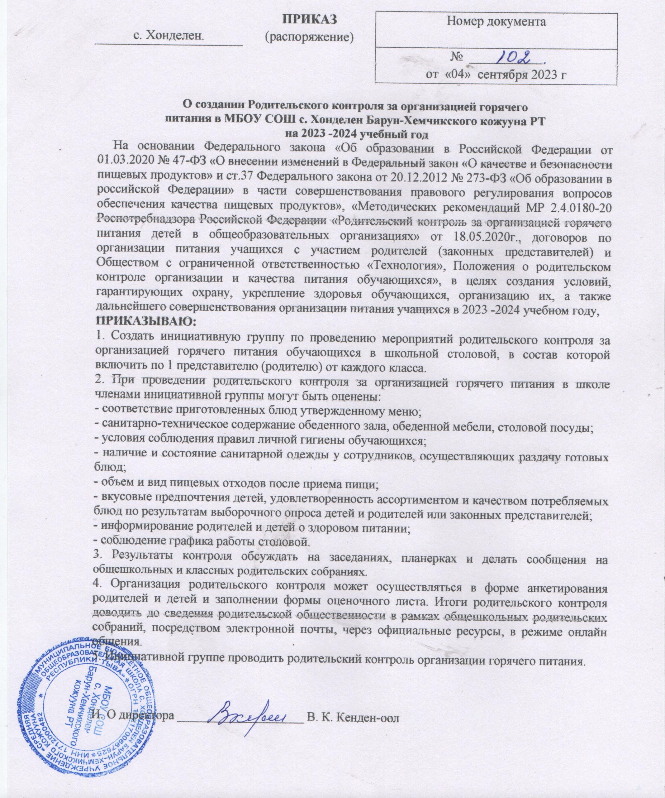 О создании родительского контроля за организацией ГП в МБОУ СОШ на 2023-2024 уг. Приказ №102 от 04.09.2023Скачать