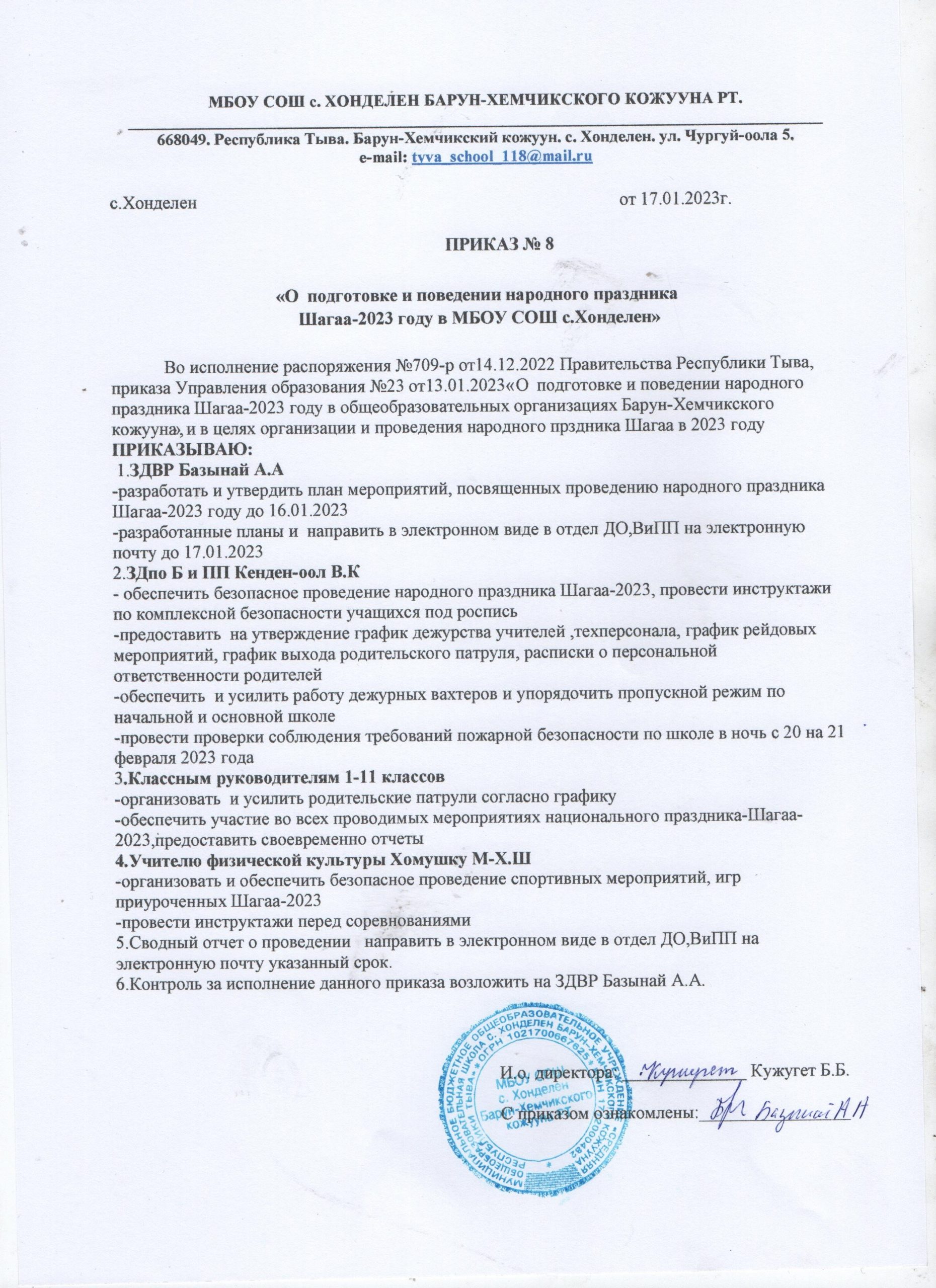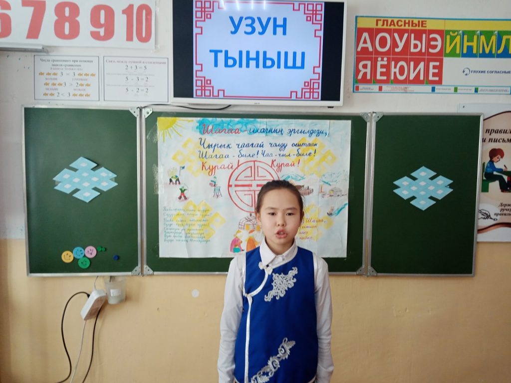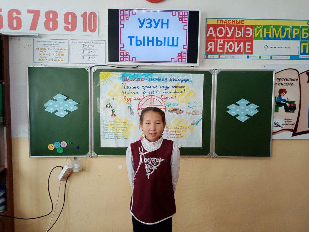 14.02.23. Эге школаның өөреникчилериниң аразынга «Шагаа-2023» байырлалынга уткуштур «Узун тыныш» мөөрейи болуп эрткен. 1- ги черге Хомушку Согдиана (29 бала) , 2-ги черге Серээ Лилия (26 бала) , 3-ку черге Ламажык Архидея (24 бала) төлептиг болганнар. Ниитизи — биле 13 өөреникчи киришкен. Эрттирген башкы:Серээ А Э.